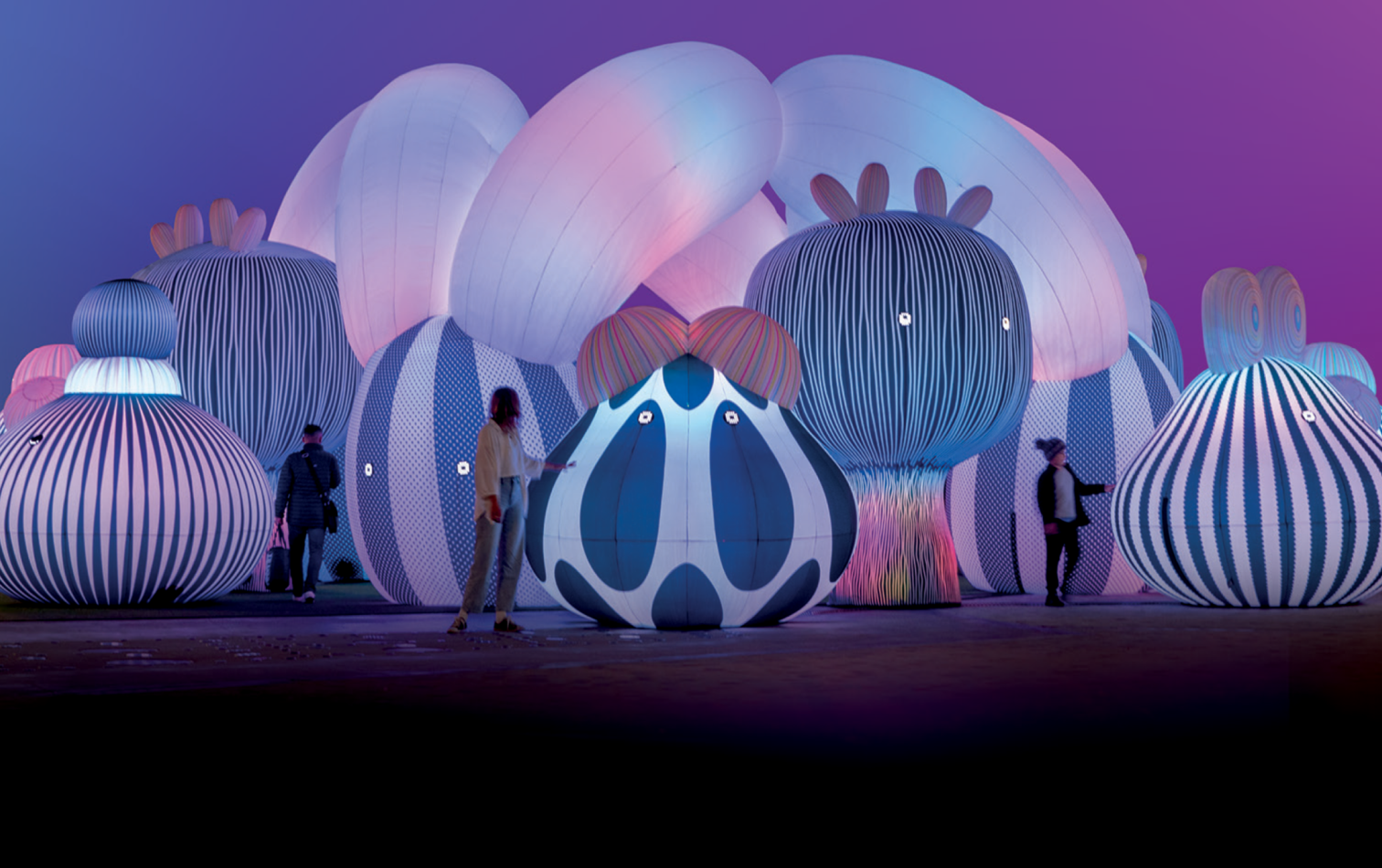 Pop Air is a walkthrough experience where visitors view and interact with a series of massive art installations. It attempts to create some sort of thematic cohesion as the visitor takes a linear path through the various exhibits, all created by different artists, but it doesn't entirely succeed in this endeavor. Some pieces, even when taken on their own, recede into the background and don’t quite capture the audience’s attention, perhaps because they lacked detail or interactivity. I witnessed other visitors simply look at an artwork and continue walking by, giving it no more than a glance or two, and failing to even experiment with what potential causes and effects guest interaction might create.
