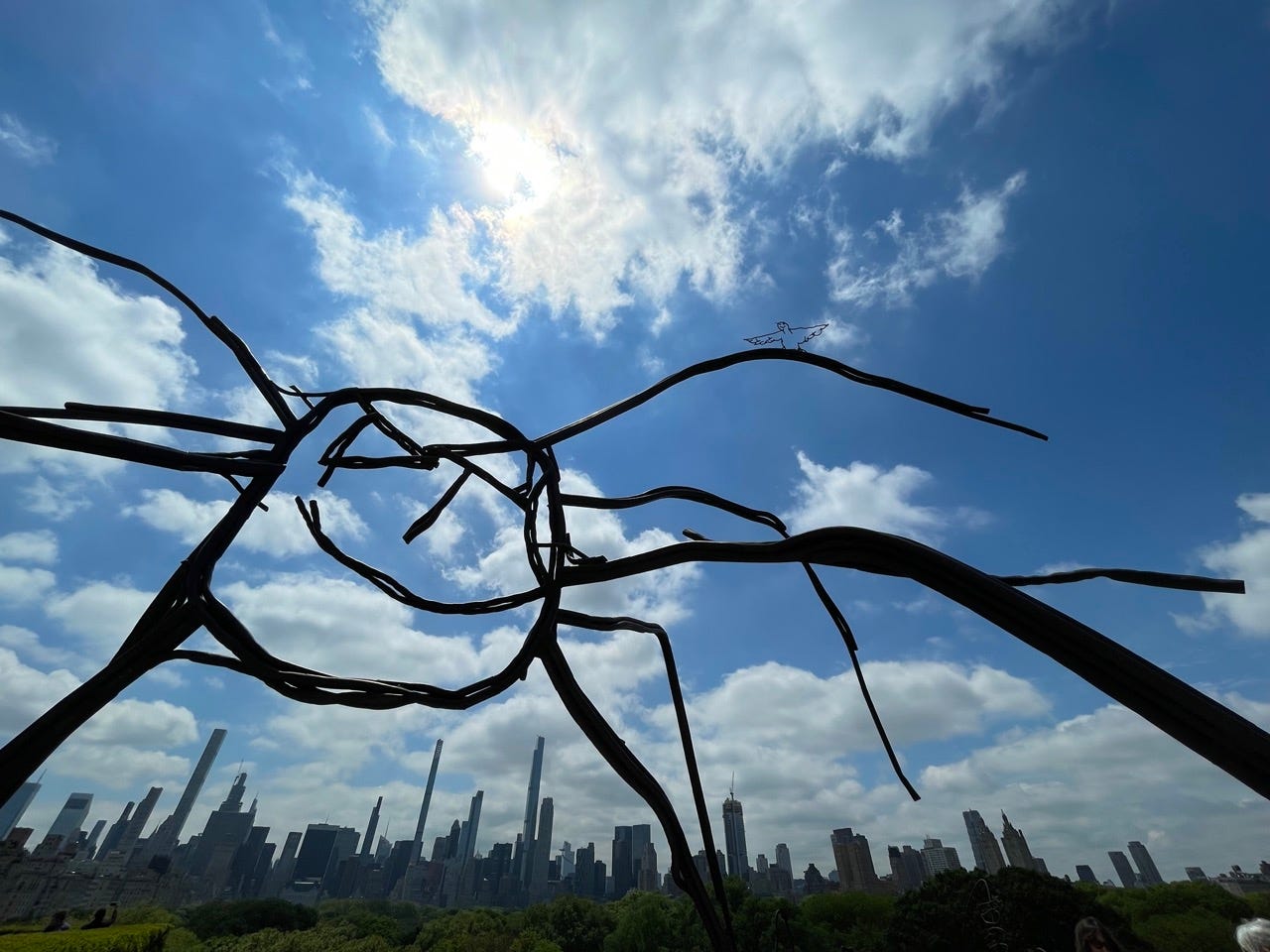 From one angle a flower blooms over Central Park, and from another into a piercing blue sky.