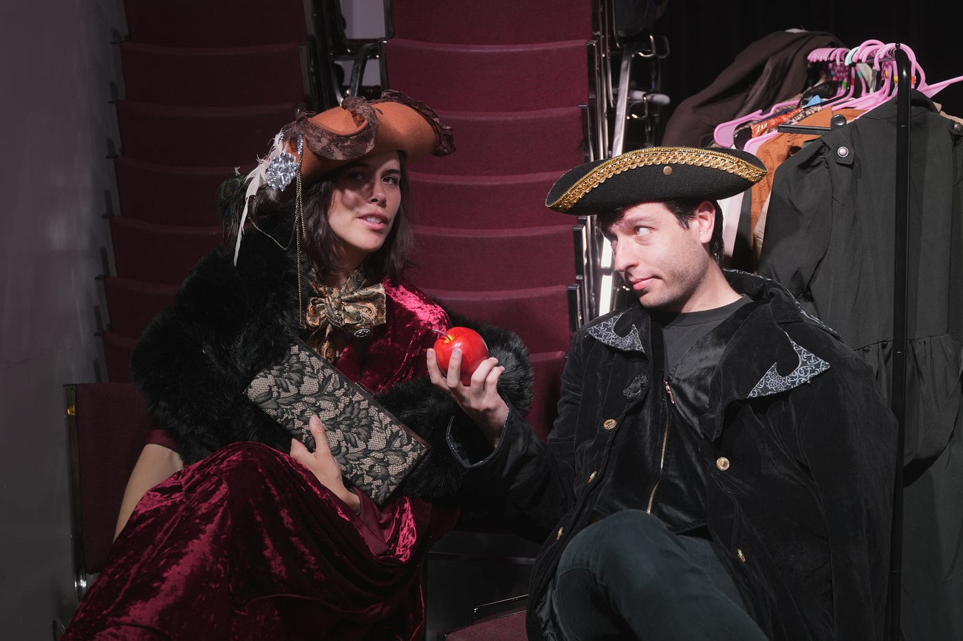 As opposed to setting up an elaborate story world for this production the last Call Theatre team has the audience pick a setting, genre, conflict, and characters out of a hat at the top of the show. The cast then goes and rifles through costumes, and comes back out and introduces themselves in character.