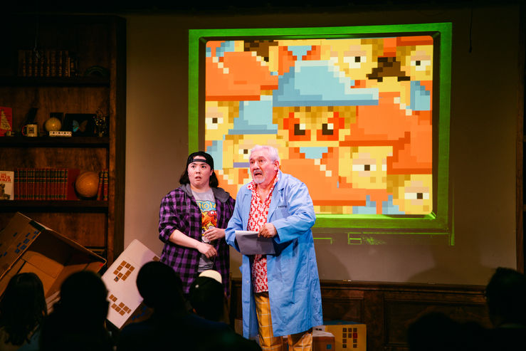 But where Balls really shines is the performance itself. The songs are great — clever jokes about monsters and card games that both resonate with 10-year old humor and offer hilarious critiques on the troubling idea of catching-them-all. The actors themselves are just so much better than you would expect from a Pokémon parody in a house for 40 people. Five of the six actors play several roles, singing in affected voices and different perspectives, and all of it is tight and catchy and fun. I was continually impressed by the commitment and strength of these performances. And the costumes, props, music, and other effects are just the right kind of DIY funny to tie it all together. It’s just hilarious and delivers on exactly what you’re looking for from a parodic musical with some heart.