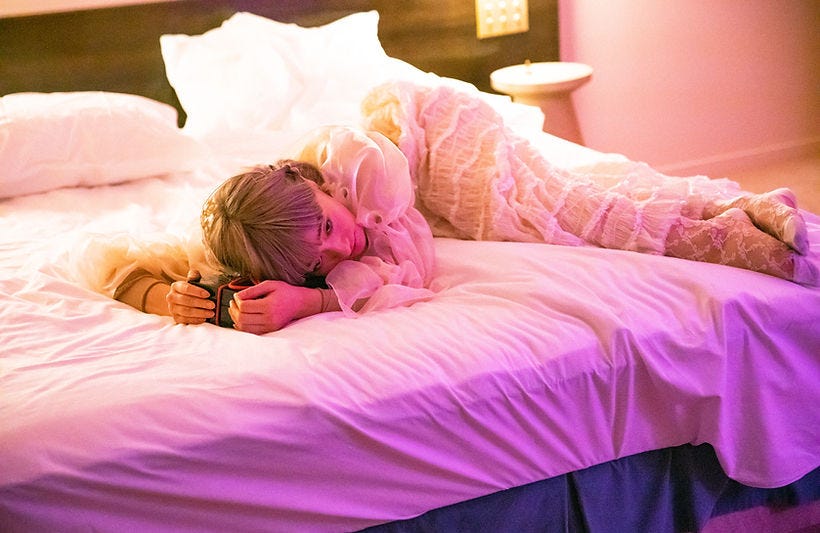 One by one they find the clue that leads them to the basement level of the atrium beneath the mural — one of the few times during the show that they gather into a single audience. A guided meditation plays on speakers, leading them even deeper into the dream.