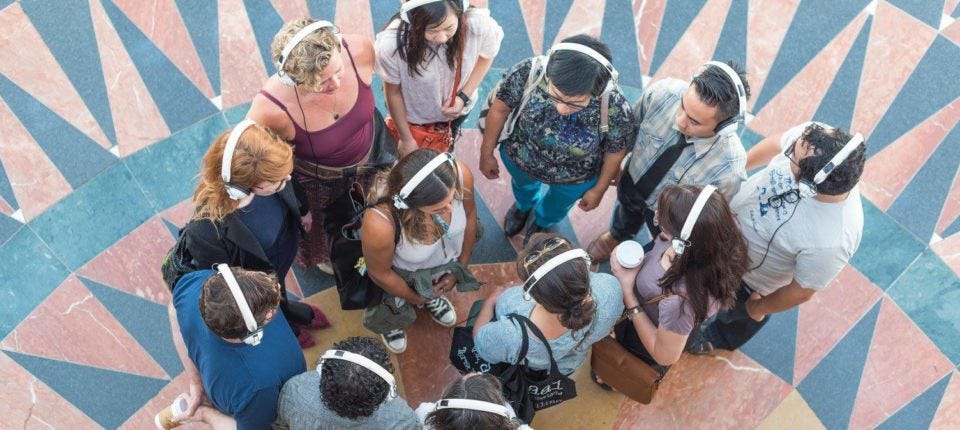 Among Us by Marike Splint will take participants from the hustle and bustle of the Santa Monica Pier to Tongva Park while listening to site-specific audio on headphones. Participants are advised to wear comfortable shoes and bring sun protection.