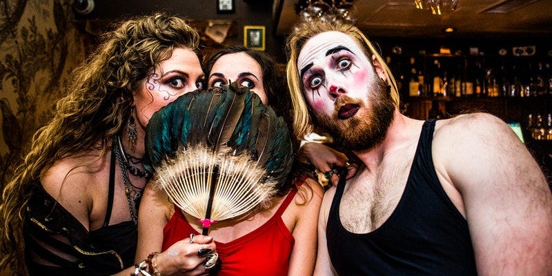 Drinking wine with clowns, vaudevillians, and circus freaks