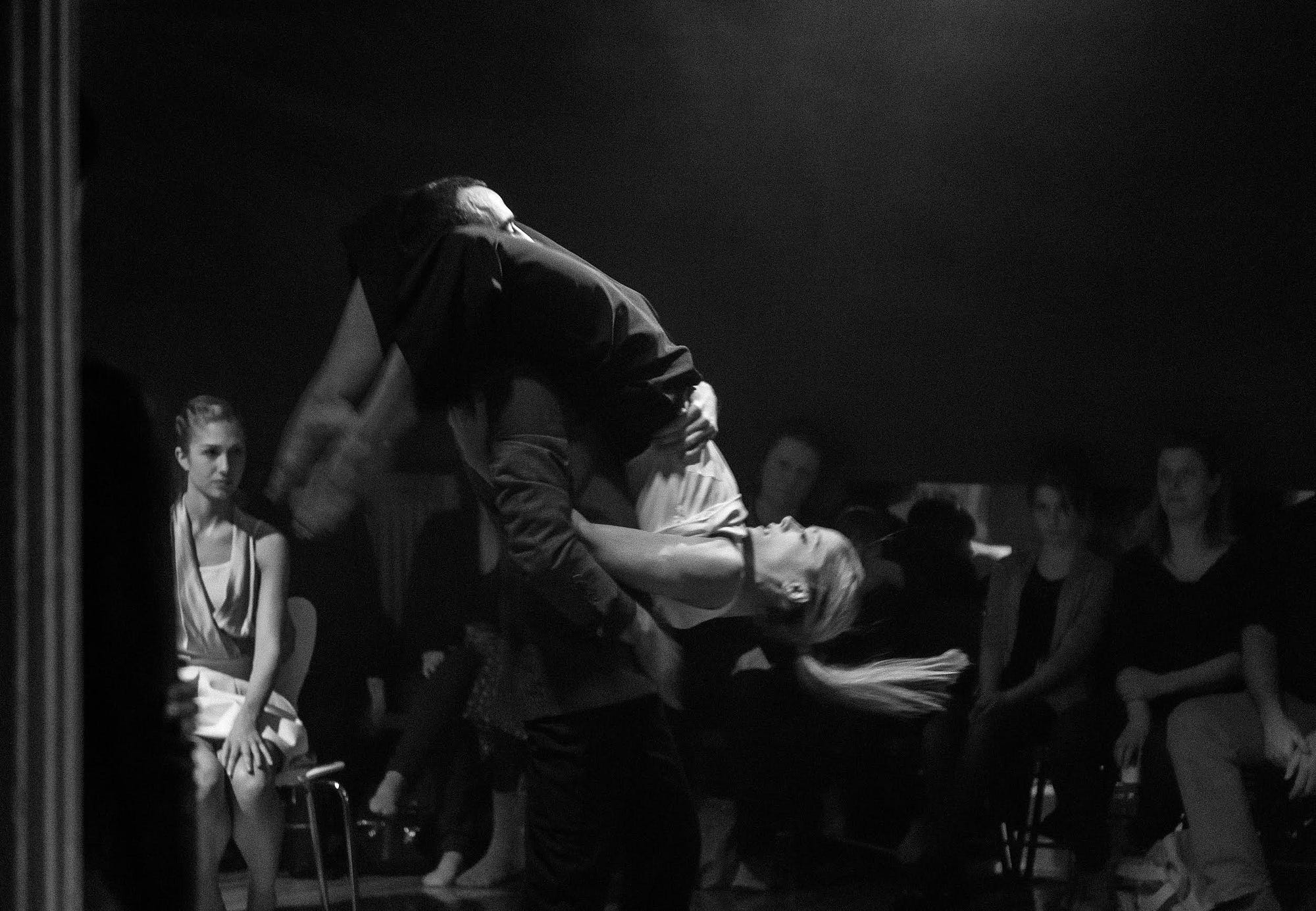 The other standout one-on-one performance was totally improvised. Richard, called “Dick” by everyone else at the party despite his protests, was the evening’s odd man out. From the minute he walked in, things didn’t go his way. His date flirted wildly with the other men at the party. That didn’t seem to trouble him all that much. After all, when she was done, he made a clumsy attempt to flirt with one of the men, though he was swiftly rebuked. The dances consistently put him in a feminine role, placing him in degrading or uncomfortable positions along with the female dancers, while the other male dancers were put into positions of power. And most directly, one of the party hosts gave a toast directly highlighting the idea that he was an outsider. This plotline came to a head when he was literally left out of a group dance number. He retreated to the bar to glumly sit alone. Despite the fact I was already seated, I felt the need to walk over to the bar and get him a drink. It wasn’t a long interaction — we just had a single, intimate beat together. But the look of gratitude and warmth he gave me, through his tangible sadness, stuck with me throughout the night.
