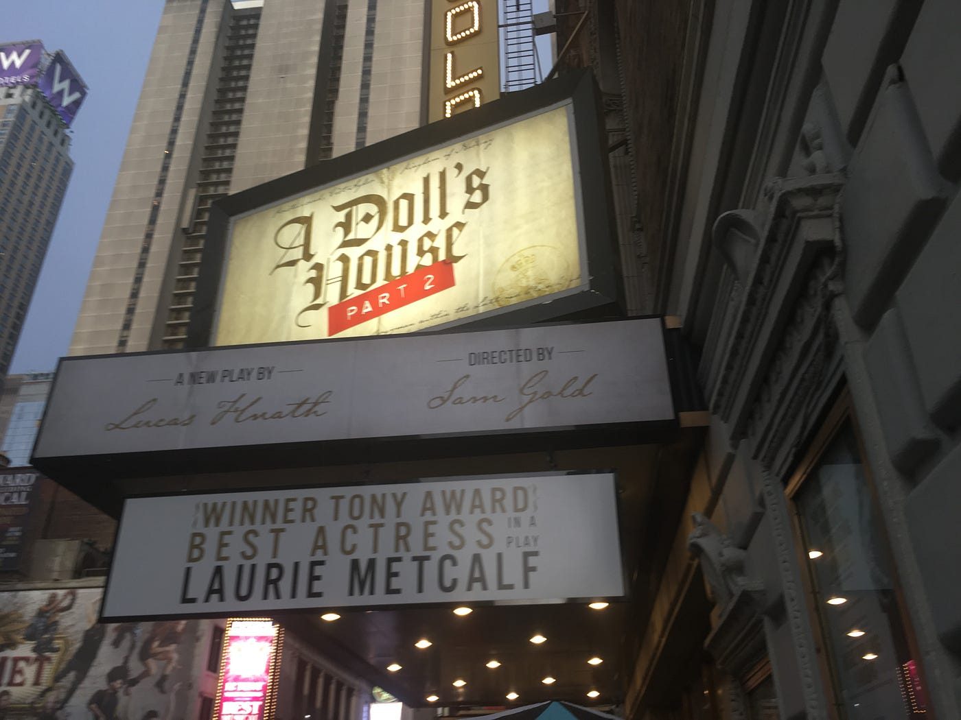 Of the six performances, I shall give a most cursory acknowledgement of two of the more traditional proscenium based productions that I saw, being the biting comedy A Doll’s House Part 2 and the sentimentally affecting musical Come From Away, both were still fresh enough in their run that they were both engaging examples of what this excellent commercial Broadway season has to offer.