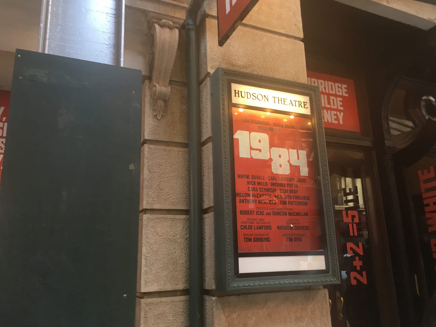 The third Broadway production I saw was the current adaptation of George Orwell’s 1984. As I have previously opined here in No Proscenium, I feel ardently that sound design is the one traditional design element which can make any production, even in a proscenium house, immersive. 1984 is an jarring reminder of how powerful that can be. From the time you enter the theatre, the ominous overtones of industrial machinery are quietly whirring all around you, and as the piece progresses, the various tortures inflicted upon Winston Smith are sonically inflicted upon the audience, thus placing the audience (even within the confines of their comfy theatre seats) viscerally in the middle of the action. Even if we weren’t in the current political climate, this would be a necessary production to see, given the current resident of 1600 Pennsylvania Avenue, this production is vital to our civic dialogue.