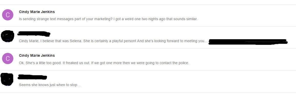 Even if I had received the press release first, seen the name “Selena” and then received the text signed “Selena,” that would have been the least they could have done to ensure no one felt freaked.