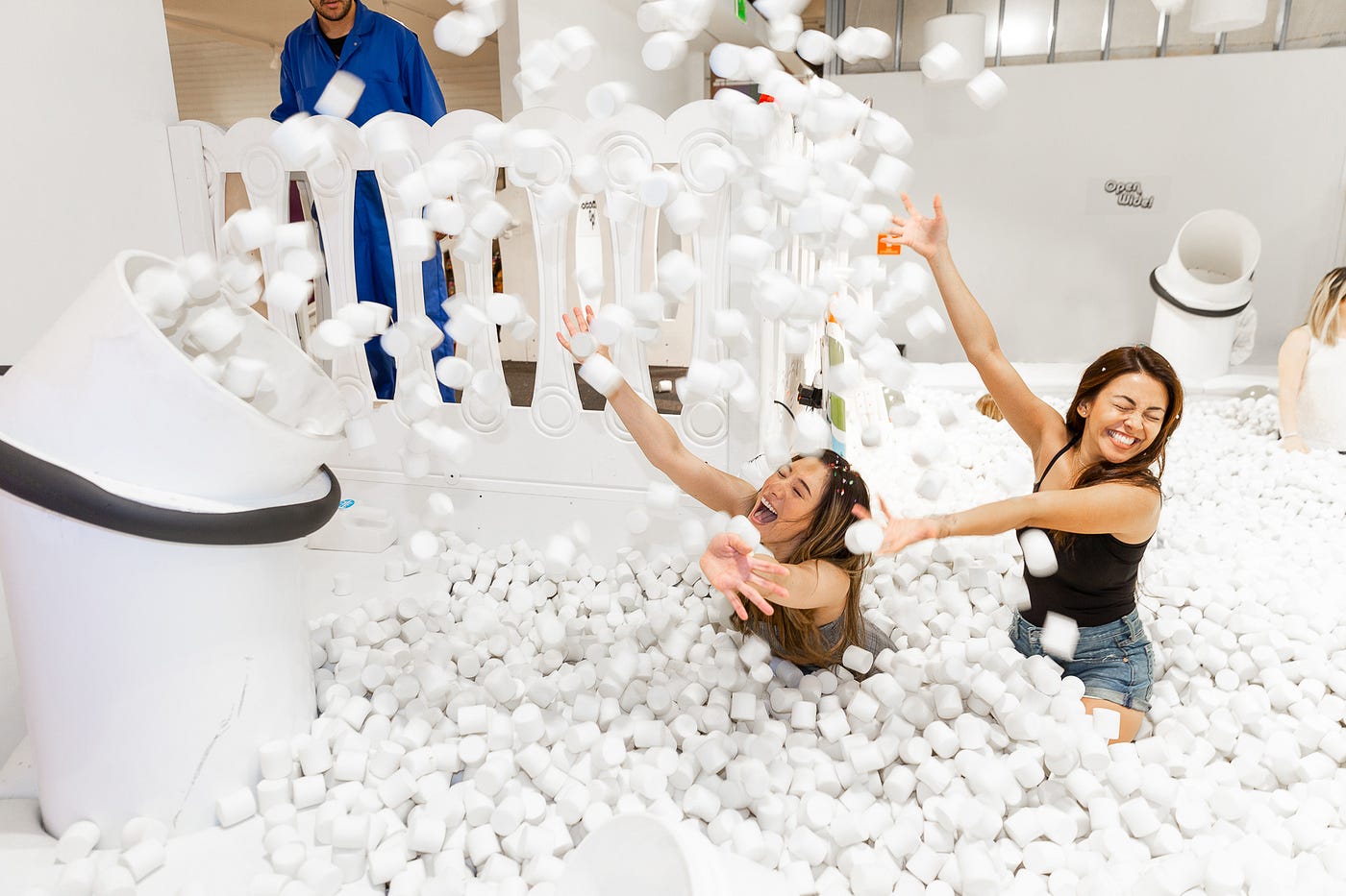 Explore our sprawling sanctuary of confectionary bliss, with over a dozen carefully curated and crafted rooms and environments. Be showered in confetti by candy-coated unicorn pigs, or swim in a pool of 300,000 marshmallows! Discover the sweets of Candytopia with 9 samples of candy items throughout the experience including chocolate truffles and bags of gummi bears.