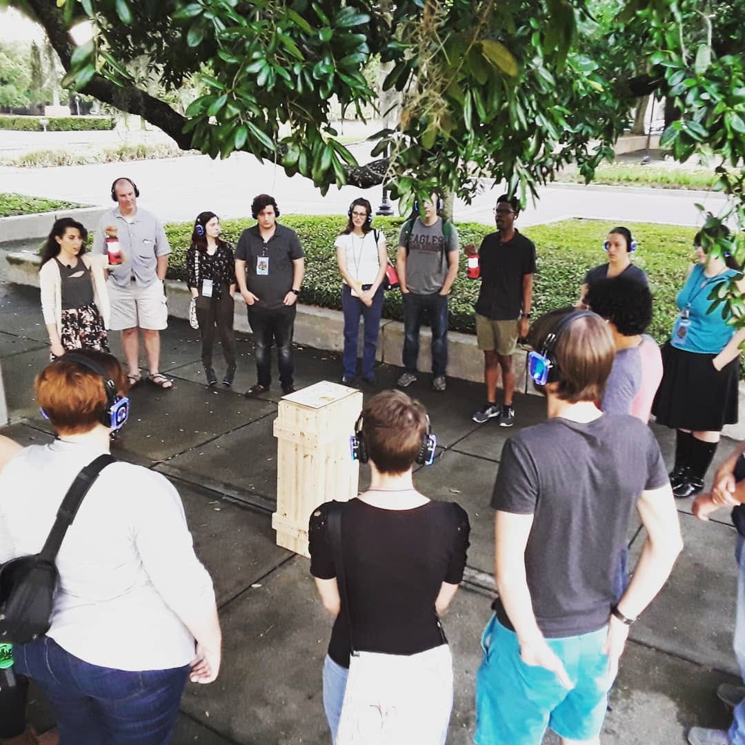 Composer Nathan Felix has been breaking boundaries by staging his headphone operas and site-specific performances in some very unexpected places, including art galleries, museums, a moving bus, and even the airport. His latest immersive work, Fury in Sound (co-created by Nathan and Scott Browning), will premiere at the Orlando Fringe Festival and take place at night in a public park; participants will hear all of the live music and dialogue through headphones as they interact with performers during an interactive seance experience. And they may even encounter some unexpected guests in this spooky immersive show.