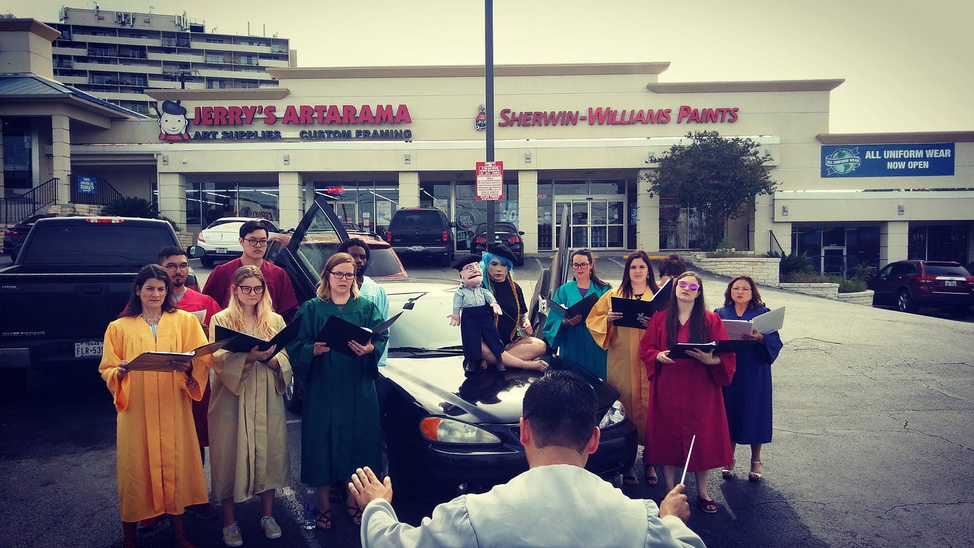 NF: Sure! The moving “street” choir is called From Those Who Follow the Echoes and I have them perform “pop-up” style (but not kitschy flash mob style) in public spaces, singing works I’ve composed. I’ll have them perform in a museum and move from gallery to gallery; once I had them perform an opera on a bus where different singers, actors, and performers got on and off at different stops.