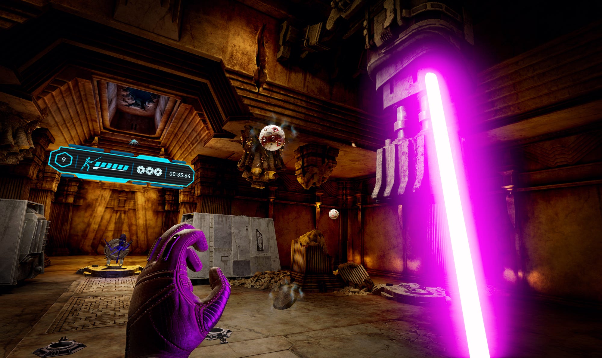 This is a 360-degree VR experience that challenges the participant’s reflexes.