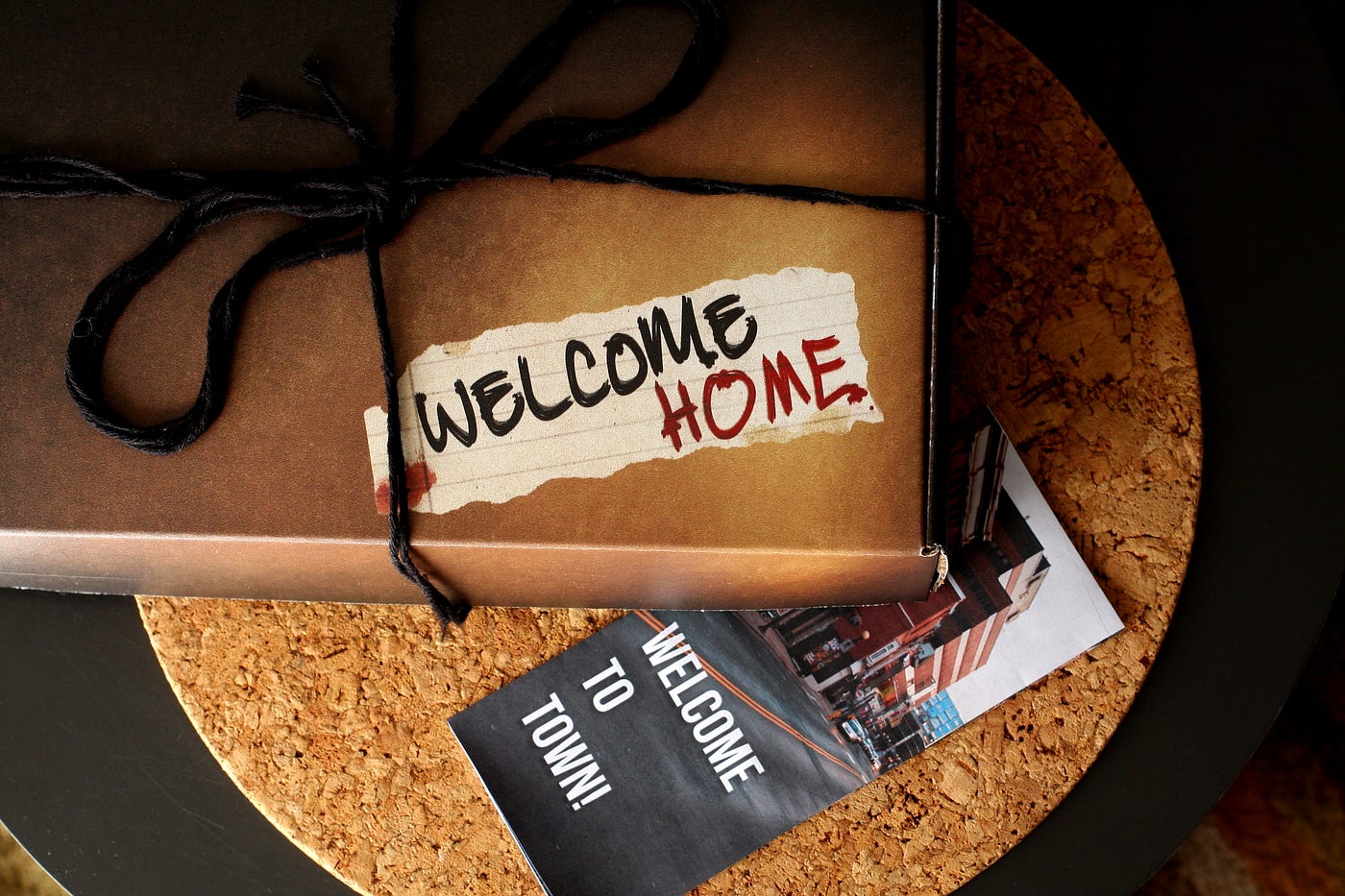 Welcome Home is a mix of a puzzle box (think Hunt-A-Killer) and a radio drama, filtered through the lens of immersive theatre. The premise is simple, you’ve just moved to a new suburban town and the locals have given you a welcome box and a meal (for this review, No Proscenium did not receive the meal portion of the experience). Like many puzzle boxes there’s a mystery to be uncovered here and this one centers around the man who previously owned your home, Eli, and the other people who live in the pleasant (or is it?) suburb.