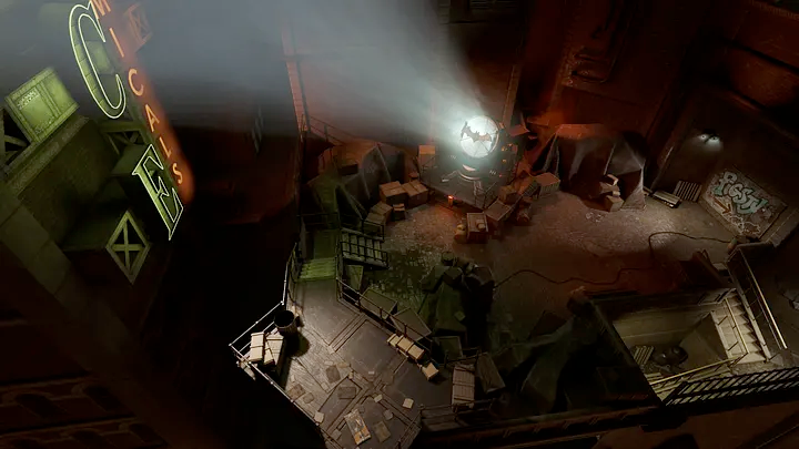 They had to go and push the drama in the story. They had to bring their own signature perspective. Narrative cut scenes happen from a dreamlike top down perspective that call to mind Camouflaj’s first game, République, which locked its POV to strategically placed surveillance cameras, keeping the player “above it all.” Most of all they had to think through how to get the player to embody the Batman beyond fighting, snooping, and sneaking.