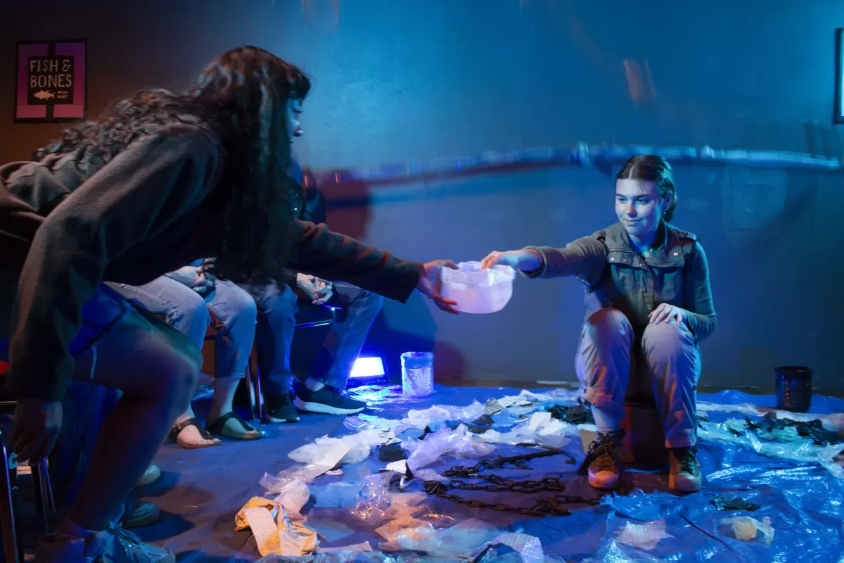 “The Great Specific Garbage Catch” by Tyler Neufeld was workshopped with Untitled Theatre Company at UCLA in 2022, and was performed again as part of the Bruin Fringe Fest in 2023. Now, the text has been stretched and reworked into an immersive escape room experience, where the audience is trapped with She on the plastic until the UN reaches their climate consensus, and until the show is over.