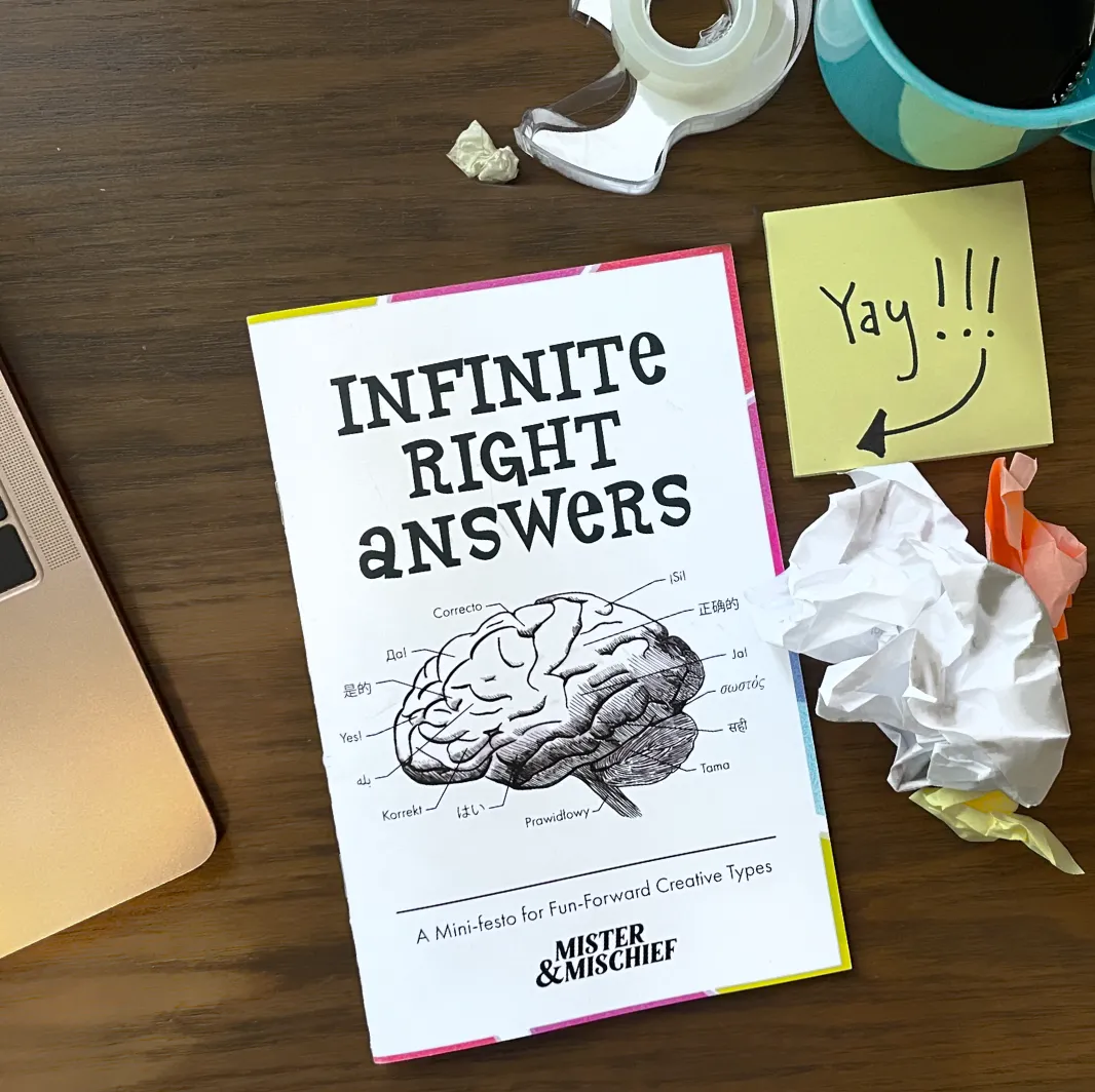 From the brilliant, bonkers minds that helped bring us Escape From Godot and 40 Watts From Nowhere comes Infinite Right Answers, a playful peek into the creative process of Mister & Mischief (Jeff and Andy Crocker). If you've ever had the chance to chat with them, or see them speak at an event (like at this past year’s The Next Stage Immersive Summit, where Andy led a workshop) you know that they're also joyful human beings who revel in sharing their craft. Equal parts hilarious, heartfelt, and useful, this zine distills the duo’s immersive wisdom into a “mini-festo.”