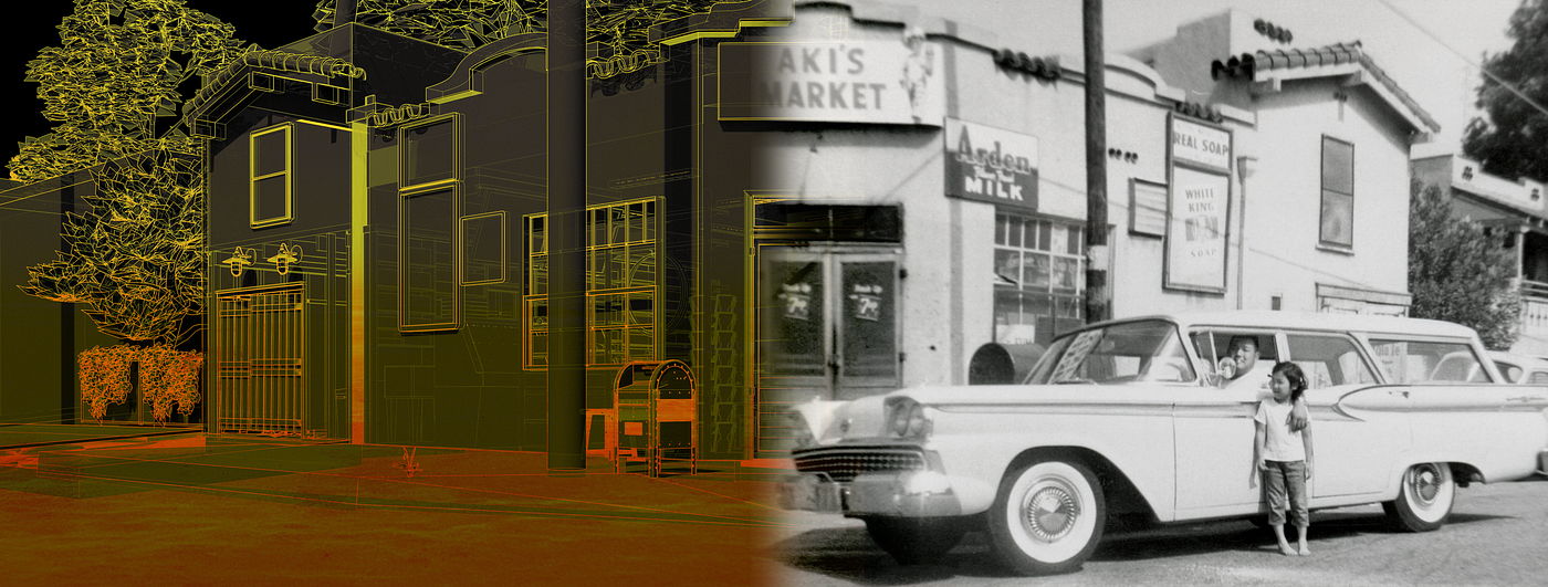 “Through a virtual reality recreation of the store and an installation of a contemporary store with the same name, Glenn Kaino: Aki’s Market is an exhibition about collective memory where the archival bleeds into the imaginary and where the most advanced technology serves the most personal past.”