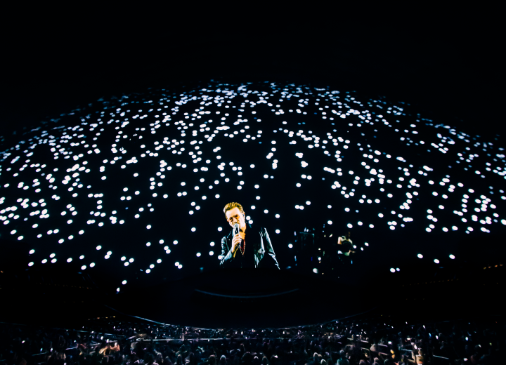 That’s the scene before me as I wait in my seat, eager to experience U2 for the first time and eager to attend a concert at Sphere for the first time. And so we wait. In the very back row of the highest section, I feel so far away from the band, perched high above the rest of the crowds. It’s a little dizzying, realizing how high up we are.