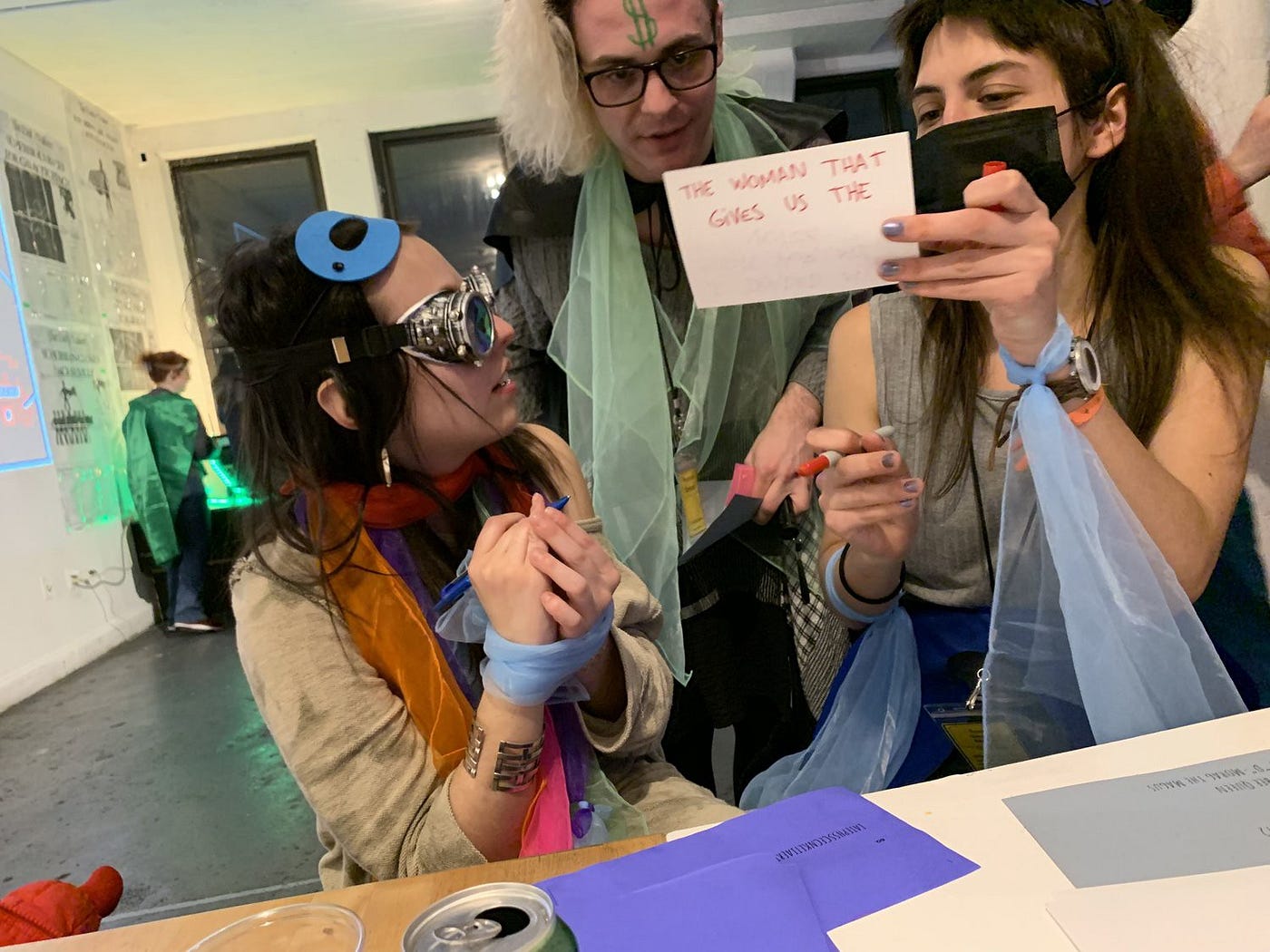 Broken Ghost Immersives’ The Rogues Gallery is a giant interactive game of Risk-like proportions where teams of three players (each complete with a dastardly supervillain identity) try to take over the world by interacting with masked actors, while solving puzzles, completing side quests, or collecting secrets, all under the purview of a mysterious benefactor. The plot thickens from there, and the ending of the story is driven by the audience as well. Which is how I found myself standing next to one half of Room Escape Artist agitating to pummel a dead enemy’s body “like a pinata” just in case it was full of gemstones, while the other half of Room Escape Artist so nobly sacrificed her own life for the greater good, to the tears of the crowd. In the end, good triumphed over evil. (Or, rather, did evil triumph over evil-er? Who’s to say?) Regardless, Team We Came Here to Make Friends both won the game and ended up making some new friends along the way. (Note: NoPro NYC correspondent Cheyenne Ligon was an actor in this experience.)
