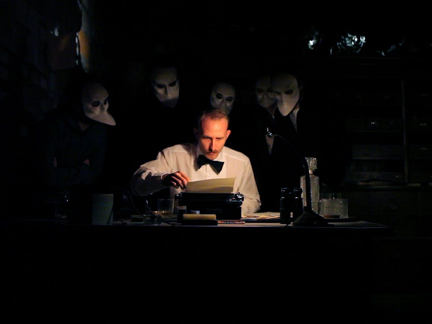 I’m face to face with Dalton Trumbo, as played by The Speakeasy Society’s Matthew Bamberg-Johnson, in their epic, sprawling work, The Johnny Cycle. Set at the eerie, gorgeous Mountain View Mausoleum in Altadena, California, 2019’s version of Johnny blends all three previous chapters of the production and spits out a fever dream of a show, with a story as layered as Russian nesting dolls. The audience travels through the mind of the blind, limbless Johnny from Johnny Got His Gun as well as the events of Trumbo’s real life. And even with a cast of multiple, talented actors, I find myself drawn to Bamberg-Johnson’s Trumbo time and time again. His refrain still echoes in my head every time I hear a rotary phone ring.