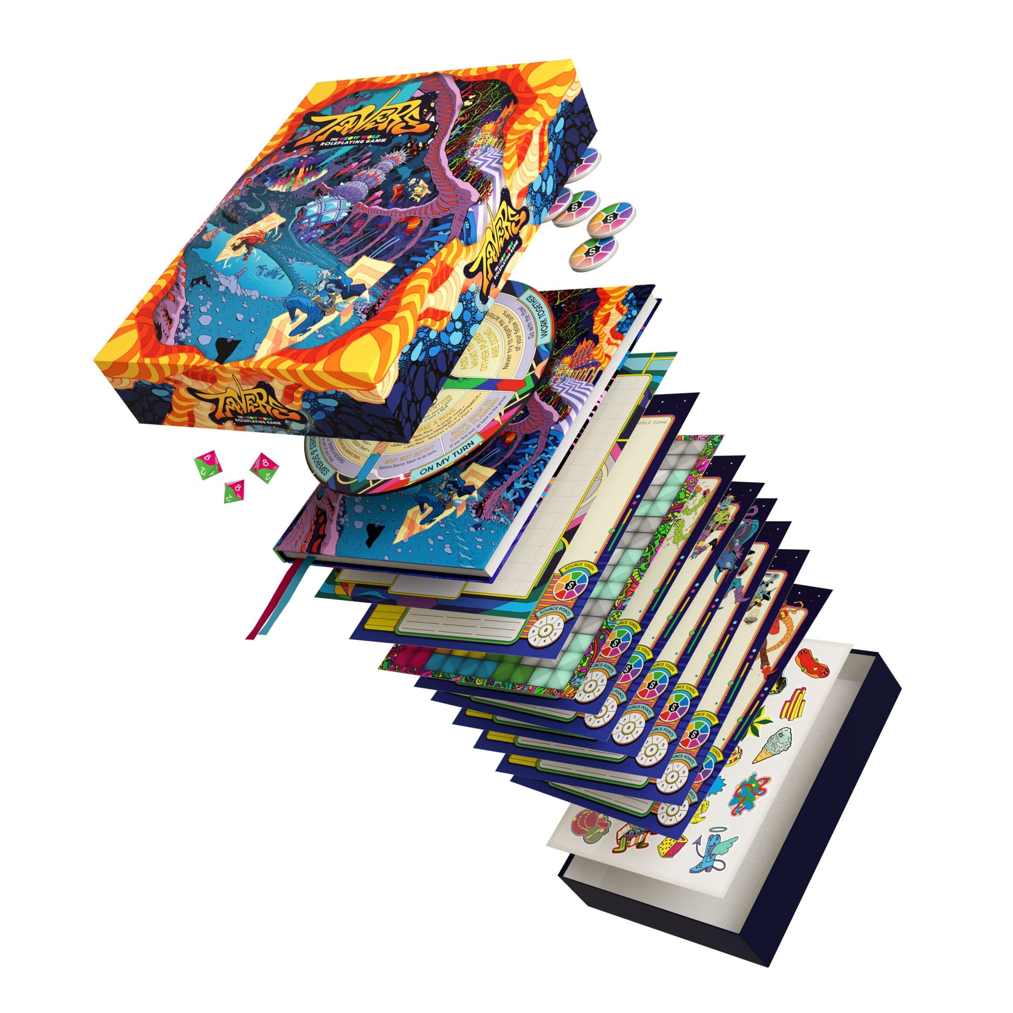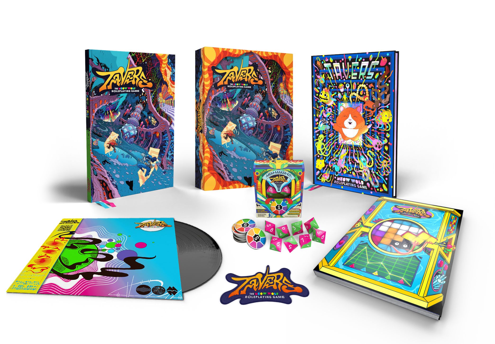 It’s a story world with elaborate mythologiesand a host of characters and institutions who reappear from place to place. One that’s as involved as, well as any well stocked roleplaying game! Which leads us right into TAVERS: The Meow Wolf Roleplaying Game.