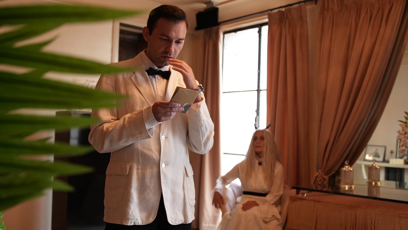 CitS: As creators, we were inspired by the location itself — the meticulously preserved Art Deco home of James Oviatt, the fashion mogul. Steeped in old Hollywood glamor, the space is a conduit for our audience into the 1920’s for the evening. As we learned more about the people who lived in and visited this home, we realized how rich the story of James and the rumors surrounding his life were as inspiration for an immersive production.