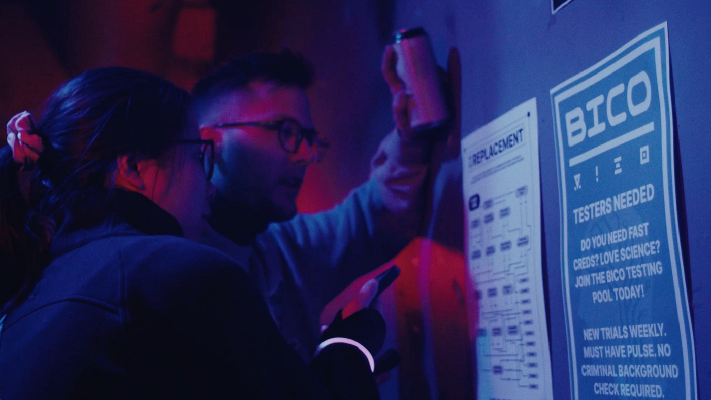 At FLUX, you step into the role of a desperate hacker looking to rustle up some quick cash. Each job you can take on a storyline of its own combining exploration, escape-room style puzzles, and interaction with live performers. Guided through the world via a web app on your phone, no two jobs at FLUX are alike, and where the night takes you is up to you. Will you strike up an unlikely friendship with a fugitive AI? Or subject yourself to dubious, but lucrative medical testing for a megacorporation? The choice is yours.