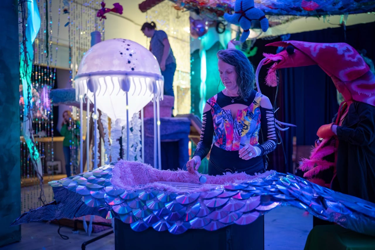 DCS: The team behind Merlantis has been working on SeaTrip, a musical comedy web series, for several years now. The series explores themes of gender ideology and expression, authenticity versus expectation, and the impact of our capitalist, corporate-centric world on individuals and communities. Merlantis is part of the SeaTrip universe made real - the undersea city of the Merfolk who have continued to live joyously despite the pollution from the human world above. This installation gave a chance for our diversely skilled team to come together and create something on a scale much larger than ever before.