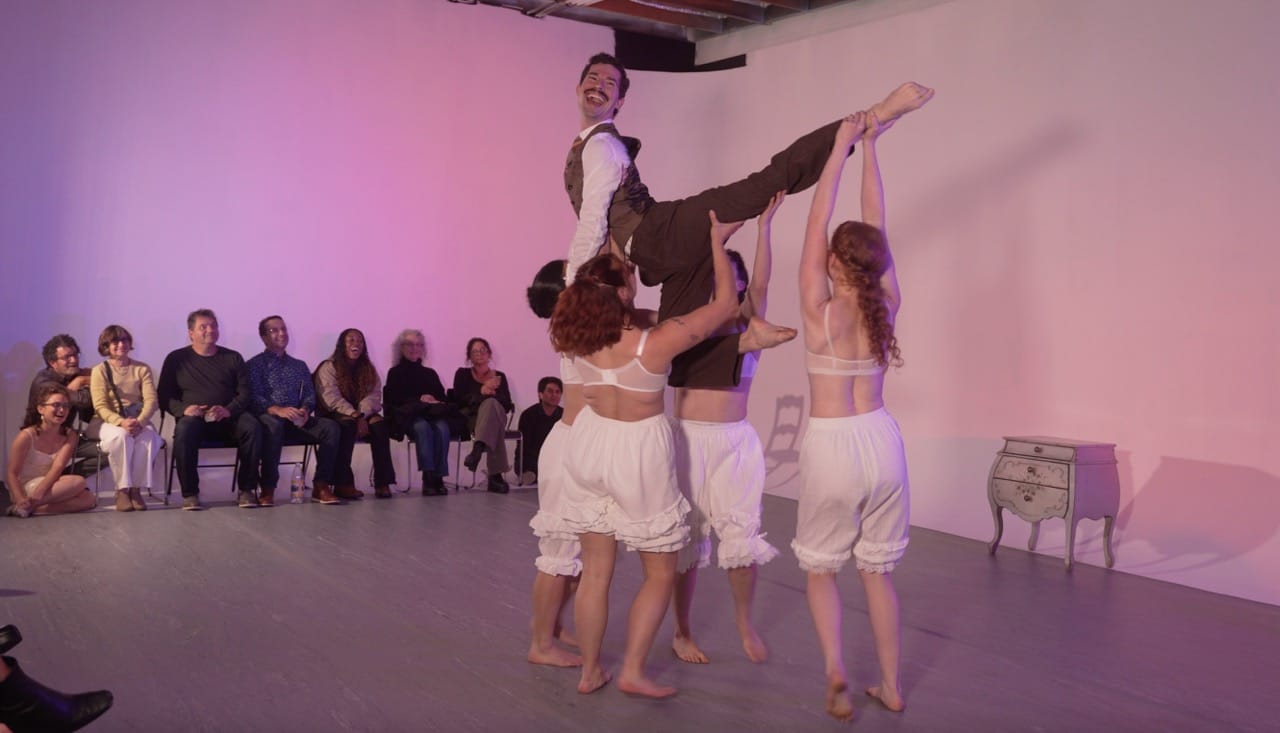 Stephanie Mizrahi: VULGAR is an evening of immersive dance-theater that drops audiences directly into the social dancing world of the 1910s — bloomers, pearls, propriety, and all. The piece satirically explores how dance, etiquette, and morality were used to police bodies, gender, and desire, then asks what of that still lingers today. Using a blend of historical movement styles, contemporary choreography, spoken text, and theatrical staging, the performers invite audiences into a world that feels playful, absurd, and slightly unhinged beneath its prim exterior.
