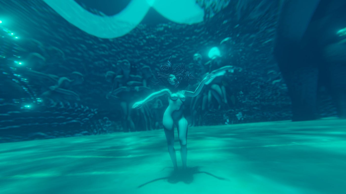 Locus Solus by Dream Adoption Society: VR enables a participant to enter a dream world inhabited by numerous cerebral clones and become the narrative agent, setting off explosions or spinning these actions into reverse. Guided by their shepherd, Martial Canterel through narrative and interactive experience our cerebral clone becomes transformed into an eternal life form.