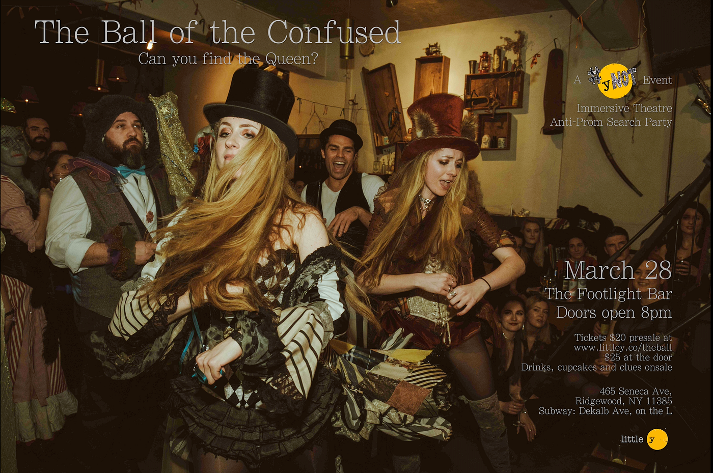 Come dressed as your most confused self and be prepared for one-on-one theatrical experiences, awkward social butterflying and the ultimate pursuit: discover the Queen of the Confused. This will be an evening like no other that will leave you feeling inspired, connected and slightly confused. Expect quirk, touch, a challenge to solve, and opportunities to purchase drinks, clues, and cupcakes.