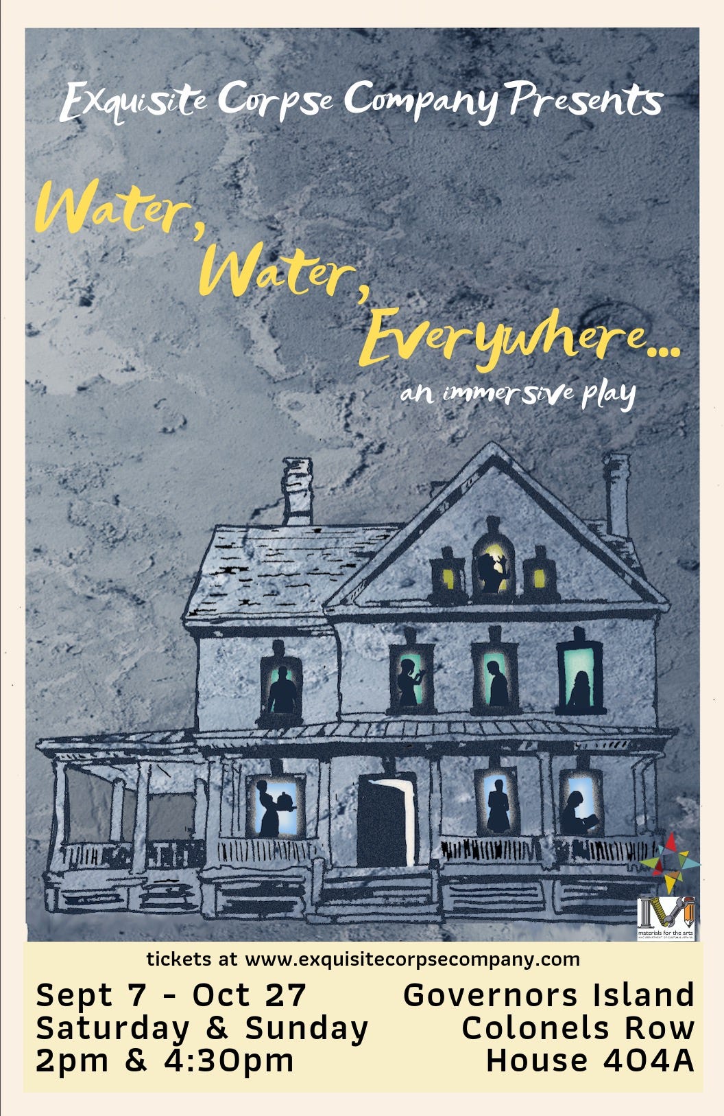 In Exquisite Corpse Company’s performative exhibition Water, Water, Everywhere…the lampshade remembers lullabies, and the teacup can tell you a secret. It is up to you to listen. Four overlapping storylines unfold in an immersive, interdisciplinary experience inspired by Governors Island’s history inside a historic house that was once a home. The show invites visitors to explore the exhumation of memory, what makes a home and how water connects us all.