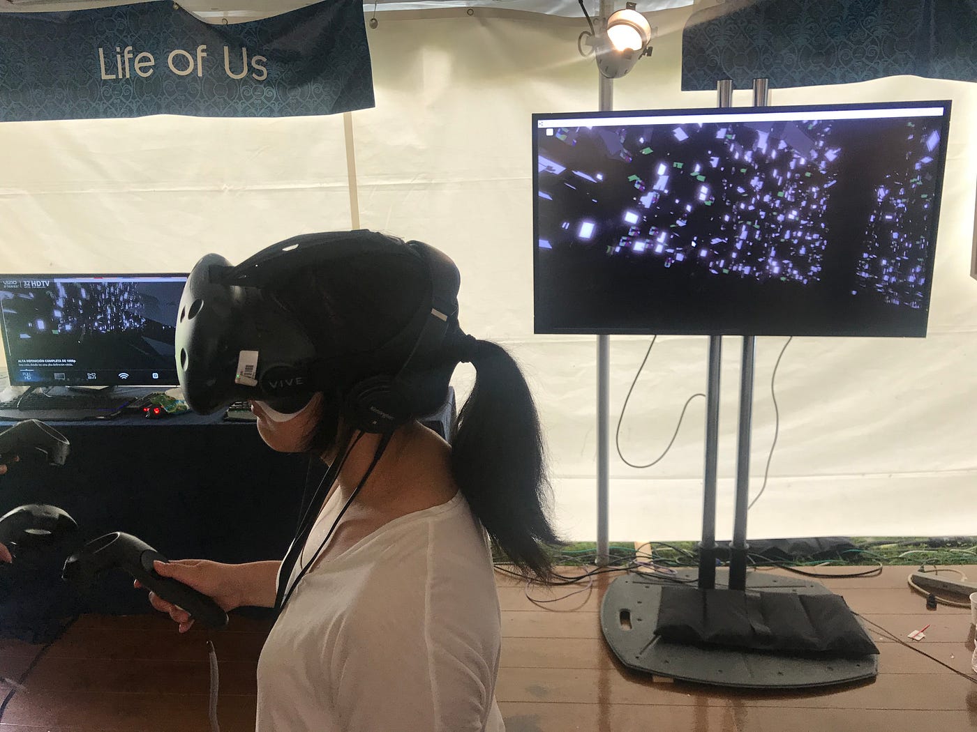 The hot and muggy weather on Friday didn’t help either. The Great Lawn had a severe lack of shade and we noticed one tent actually left their official space and set up their VR headsets in some shade nearby. More than a few people remarked how quickly foreheads became hot and sweaty in an open-air tent when wearing a heavy VR headset. Overall the audience seemed to be forgiving of the monkey wrench Mother Nature threw into the mix but remained frustrated at the poor communication and management of expectations.