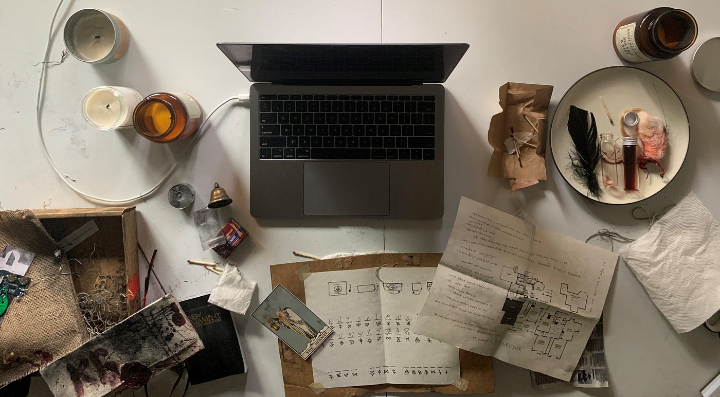 One Day Die’s two main features are that it’s a remote show and that you receive a box filled with mysterious items. Both of those are in service of a séance meant to bring Ian Oddye (an anagram of One Day Die) back from “the other side.” Come showtime, you’re invited to log into the custom built platform for the show with your box in hand to begin the experience.