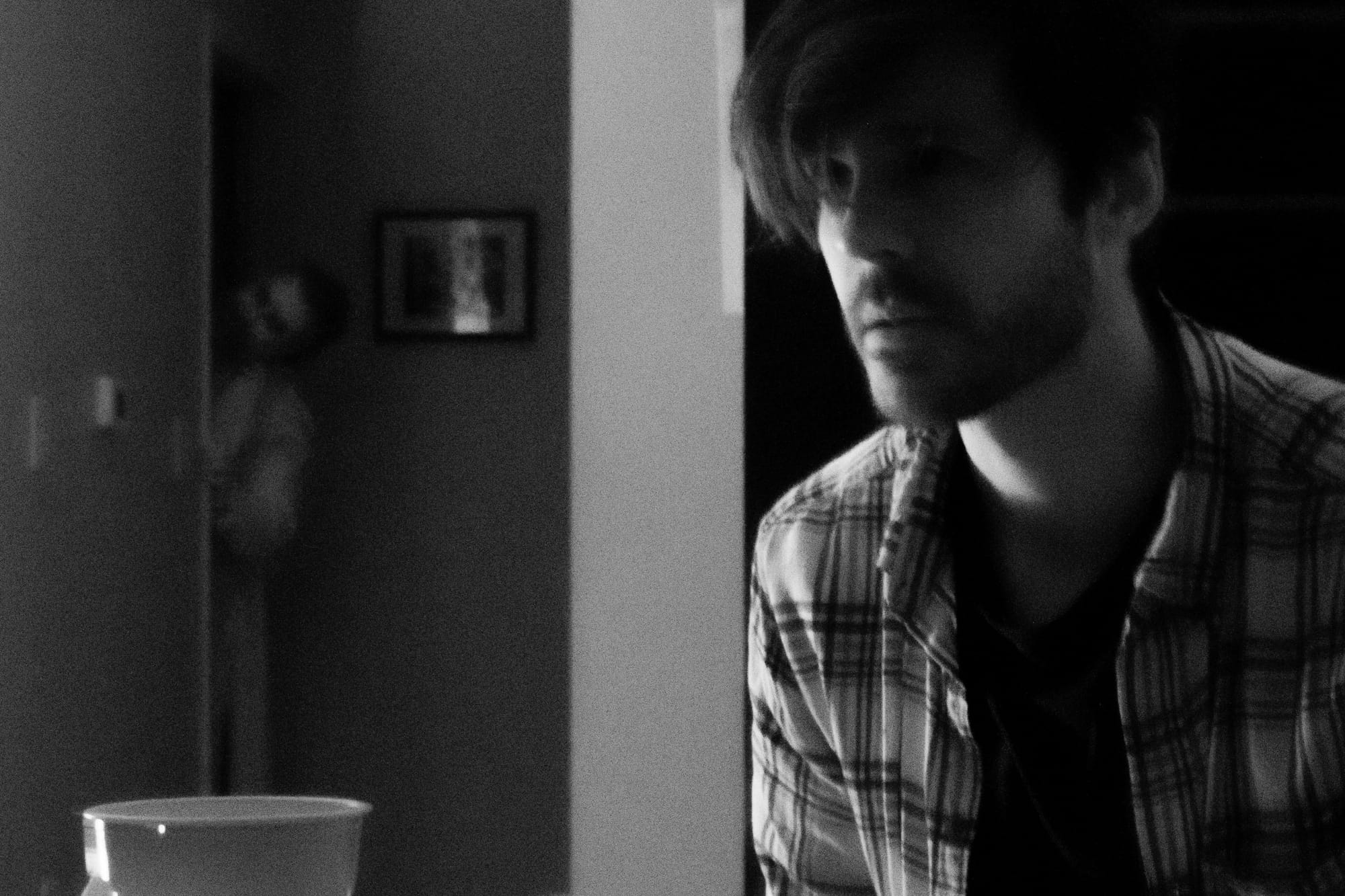 As I entered Austin’s home, dark and unlit except for the red light hanging from my neck, it was immediately clear that he was in the throes of depression with paper, cans and other bits of trash littered across the kitchen.
