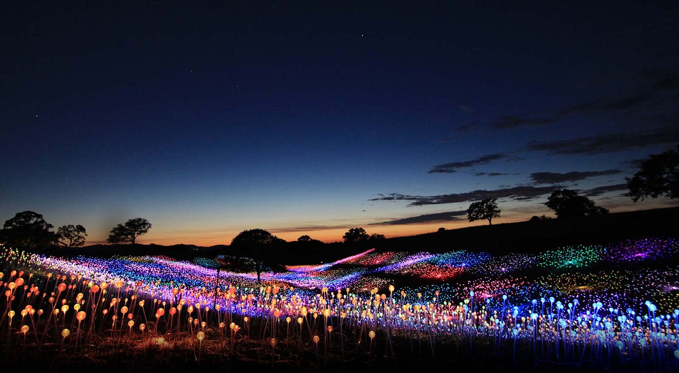 A 15 acre walk-through artwork, Field of Light is a sculptural composition that covers Sensorio’s rolling hills with an array of over 58,800 stemmed spheres lit by fiber-optics, gently illuminating the landscape in subtle blooms of morphing color. Powered by solar, the stunning exhibition captivates visitors, inviting them to engage with the countryside through an ethereal light-based, sculptural experience. Munro’s work has been called “a light safari in wine country” by The New York Times, “awe-inspiring” by Travel & Leisure and “mesmerizing” by the Los Angeles Times. The Huffington Post said, “It can be hard to describe in words the gifts that Munro bestows on the landscape as his work escapes description in either written or photographic form, it is something to be experienced.”