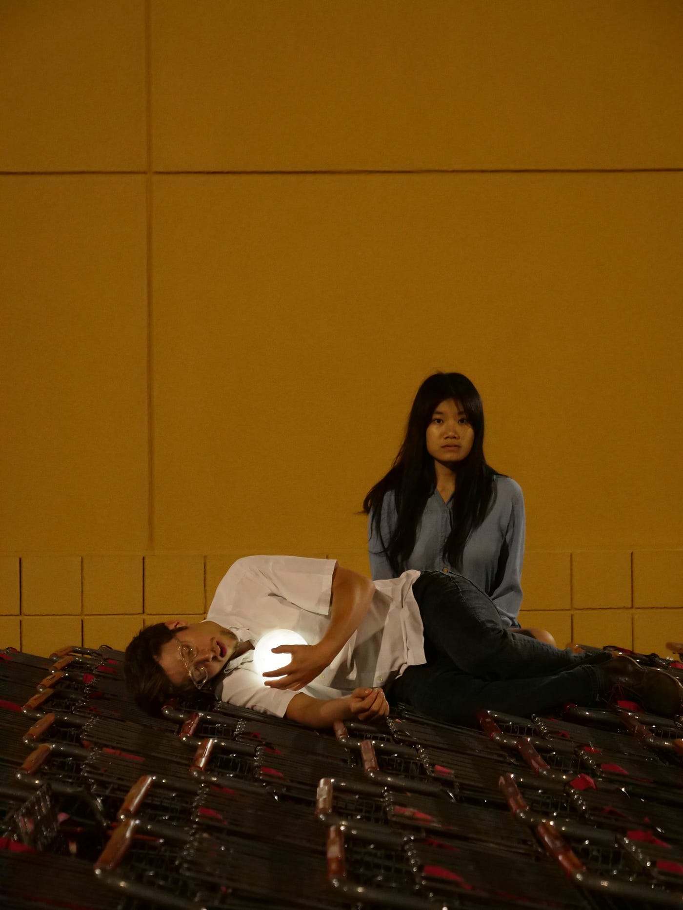 Frozen hot dogs on display. The steady thump and roll of grocery carts. A lone figure stacking cans. A guerrilla performance inside an actual supermarket for an audience of one. Aisle is a somnambulistic drift across international borders, through memories of the past, and visions of the future.