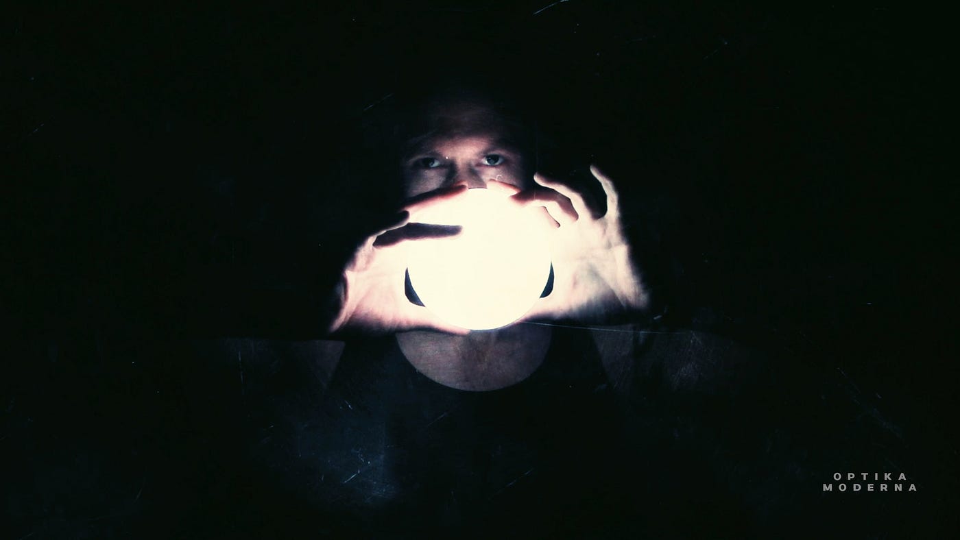 In practice, this turns out to be a séance for one: an attempt to send, and, perhaps receive, a message to a passed loved one. The package mailed to audience members by Portaleza involves constructing “Hypnoculars” (imagine a VR headset without a front or lenses, used in all of Optika Moderna’s shows to frame the action). The majority of the experience is loaded onto a cell phone with headphones and viewed through the hypnoculars. I also receive a mat covered in art nouveau celestial bodies and mysterious angelic runes and a sealed envelope on which to write my message to be delivered. And I’m instructed to complete this experience in a darkened room, which I do.