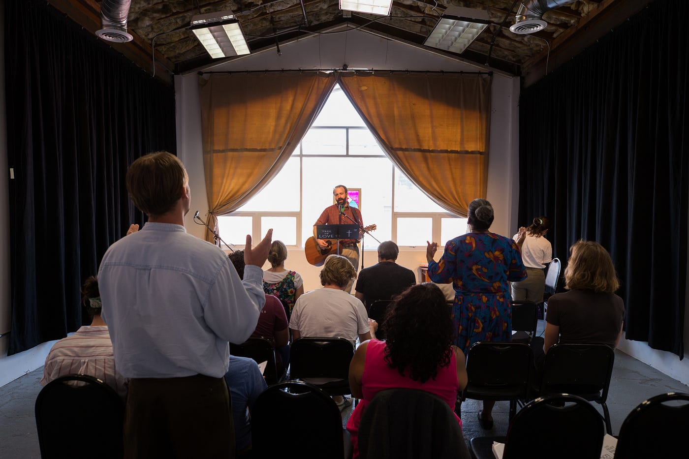 Writer-director Lauren Ludwig’s new piece, which just wrapped up a workshop run as part of the Hollywood Fringe Festival, is an indie film that unfolds in real time. A small audience is brought into the world of Philippa (Nerea Duhart), the daughter of a pastor at a struggling church in Rochester, New York in the mid-90s. Grounded in the memory play tradition, the work pulls off the deft trick of bonding the audience quickly to Philippa’s point of view through theatricality before whip-sawing us into a fully naturalistic church service.