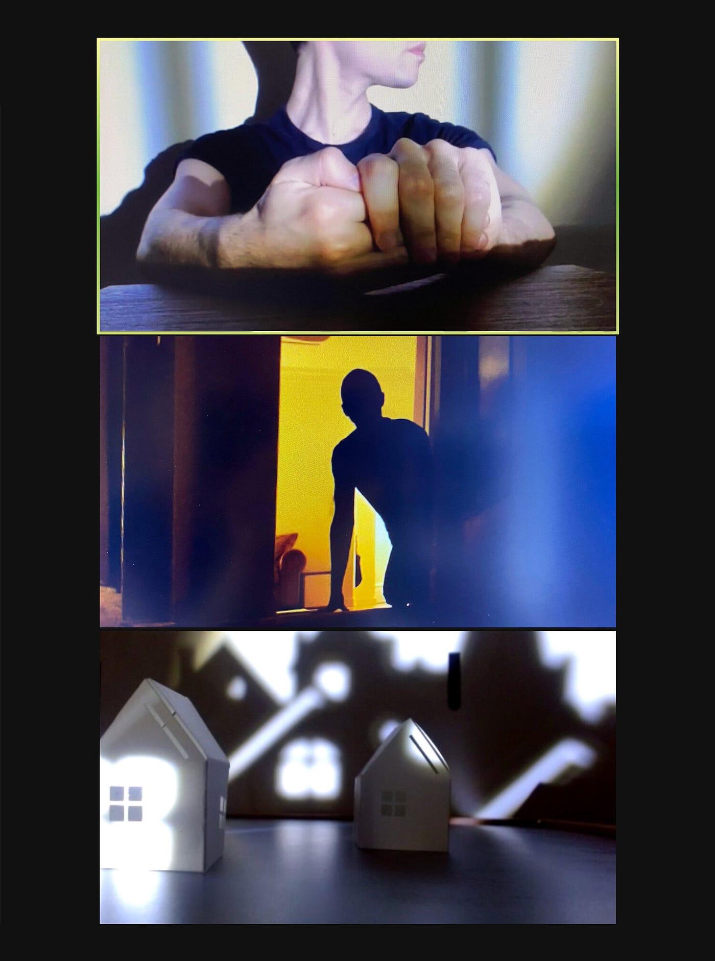 And this is all achieved through the simple moving of props, lights, and bodies. So if there was an award for “best practical Zoom special effects,” Return the Moon would certainly be in the running, if not the outright champion. The effect is hypnotic; it all feels like a live edit of a movie as each of the four Zoom squares show us related vignettes in succession. And though the mechanisms being used are similar to film, the whole thing still maintains a homegrown, DIY feel with its candles and shadow play and origami homes.