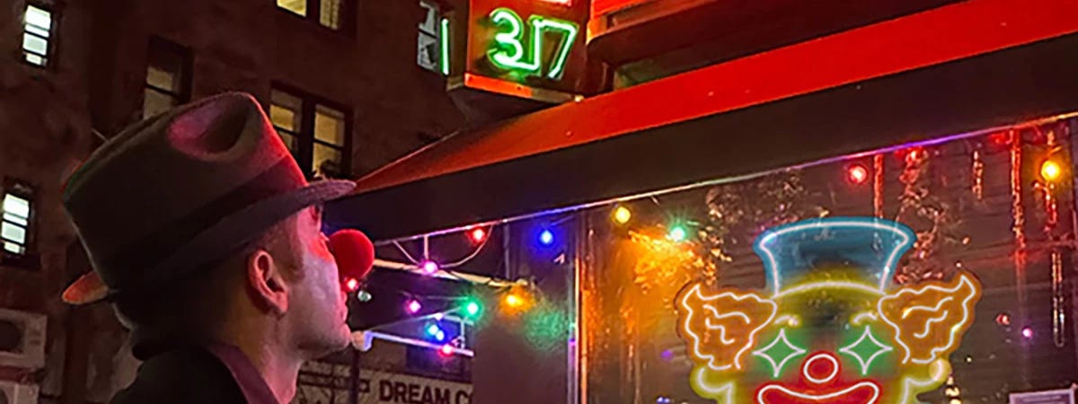 Given my mild-to-moderate clown aversion, I didn’t expect to love Clown Bar 2. Frankly, it sounds insane: it’s an off-off-Broadway clown noir (yes, that’s correct! A clown noir!) murder mystery performed in the back of a dive bar on the Lower East Side. It was insane — and I absolutely loved every minute of it.