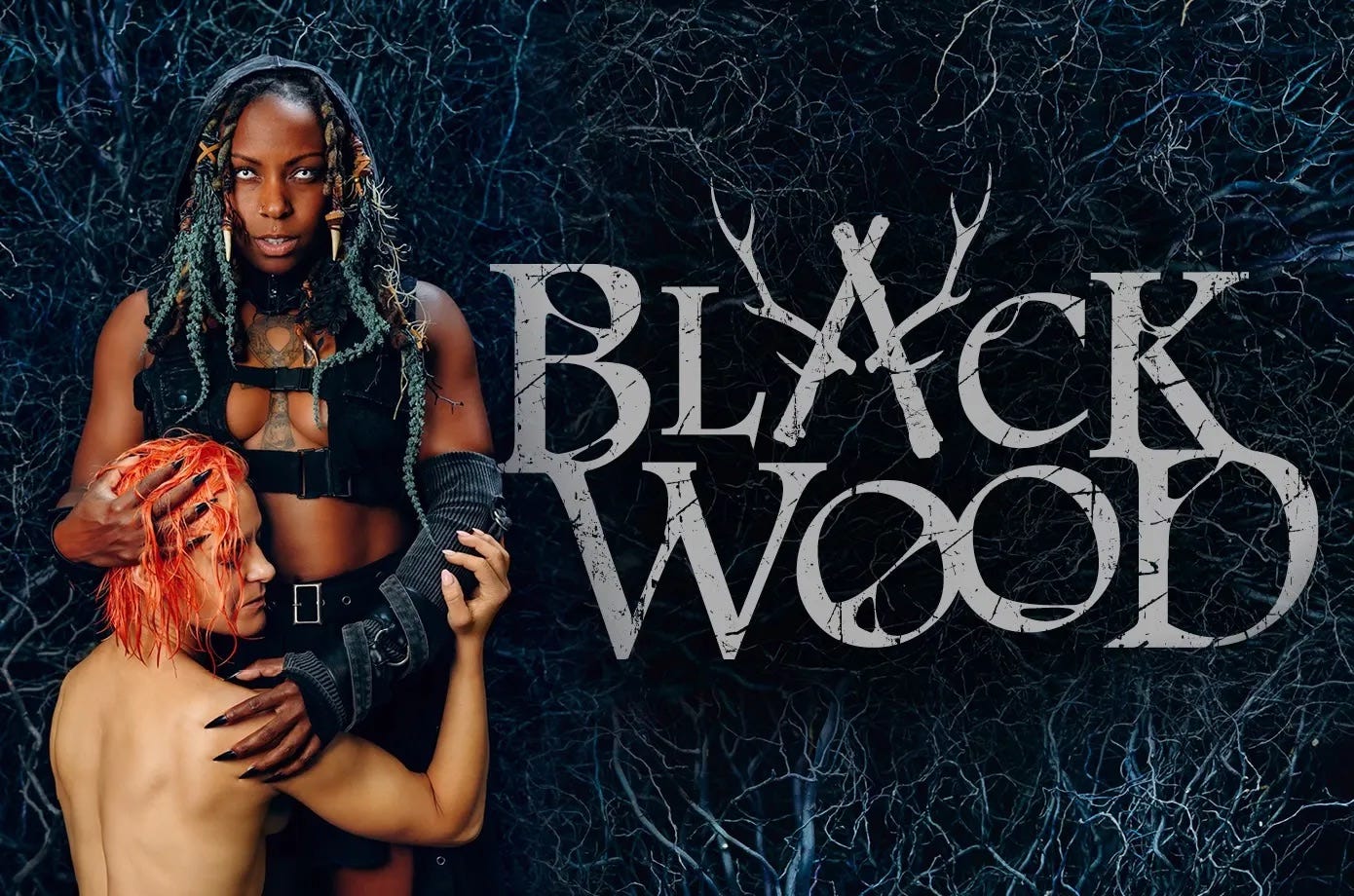 All of this is a means of introducing the world of BLACK WOOD, the latest of Gunnar Montana’s immersive burlesque fantasias. BLACK WOOD (shockingly for the burlesque space, the name is not a double entendre) is a dark fairy tale forest, in which a coven of witches perform their grizzly, giddy sacrifices. The choreography largely sees their practices as exuberant, or meditative, or rooted in love, no matter the horror of each vignette’s subject. The witches may sacrifice an innocent camper, but see how they joyously dance around his corpse, and ride the frame of his tent as a carnival ride, clutching each other lovingly and grinning as they spin through the air.