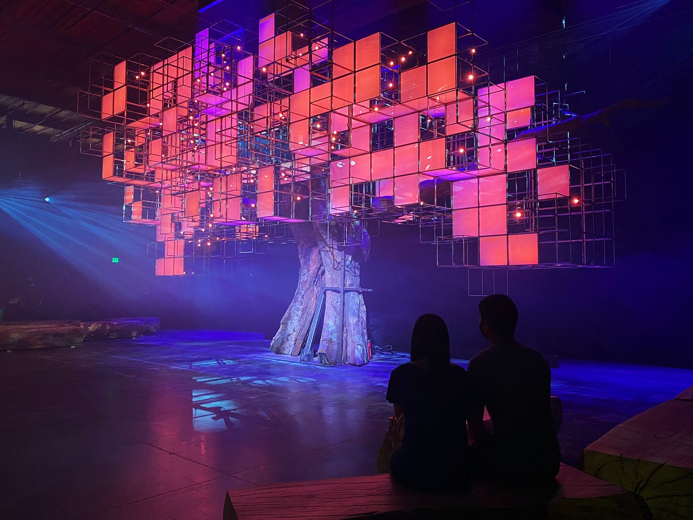 Inhabiting 28,000 square feet within a warehouse, A Forest for the Trees consists of interactive art, including multiple tree “performances.” Participants move through a progression of spaces and installations while retaining freedom of exploration and “agency of imagination,” as described by Glenn Kaino, the production’s creator. It’s a fusion of culture, science, and advocacy by way of embodied, immersive storytelling.