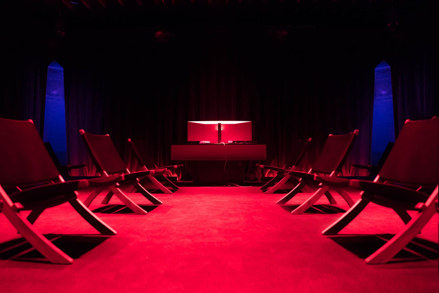 I have never experienced anything quite like Chromasonic’s Satellite One. For fans of light artist James Turrell and his “Ganzfeld” installations, this immersive color and sound bath is a must. Both a communal and individual act, groups of eight participants are led into a white egg-shaped chamber with a central neon column. During a 30-minute composition, participants may enter into a visceral and meditative state.