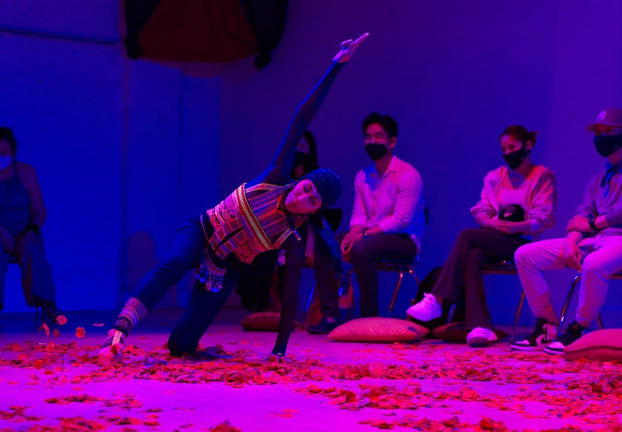 Fueling this stunning piece is Yatkin’s amazing solo-performance. I’m pretty sure if you look up the definition of “triple-threat performer” her name would be listed. But that accolade doesn’t do Yatkin justice, as there’s an intense intimacy to her efforts. As she dances and moves throughout the space, it never feels removed as she’s constantly incorporating the audience in some fashion. Making fleeting eye contact with her fosters the weight of an intense, private one-on-one moment for me.