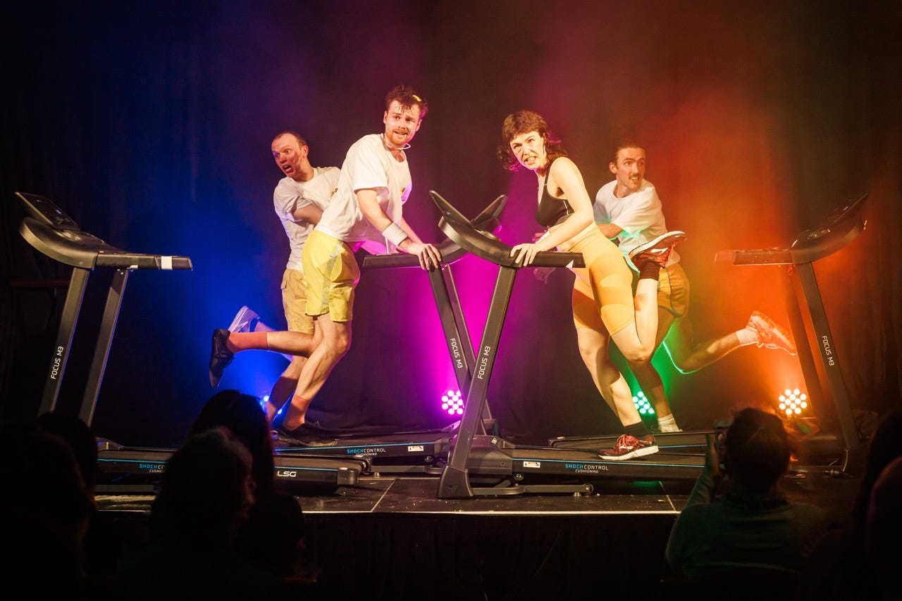 Burnout Paradise is a participatory performance created by Australian theatre collective Pony Cam that takes place pretty much entirely on treadmills. The piece comes to New York as a cult favorite hot off the festival circuit, and it’s immediately clear why: Burnout Paradise is ridiculous. It’s absurd and campy and just downright stupid, but it’s also so, so smart.