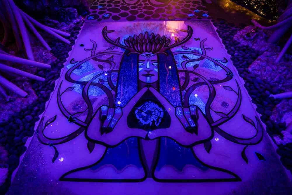This holds true when it comes to special activations in the space, too. There are a number of opportunities to make things happen in Shiki Dreams, always indicated by a large pair of yeti footprints. Stepping onto those footprints triggers sounds, lights and movement from within the set — all with the goal of getting you to downregulate and ponder your existence within the natural world.