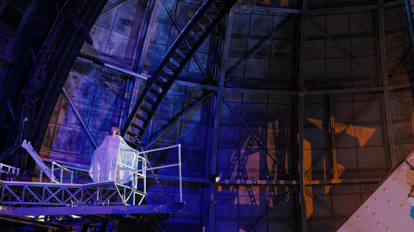 The observatory’s dome is a massive structure, like a spacecraft in its own right. A small cast of eight struggled to maintain presence across the dome’s diameter. With the 100-inch telescope rising from the center, visibility of the walkway was limited. Even with singers in view, there were blocking missteps: one singer repeatedly stood directly in front of the monitor, obscuring the supertitles. This could potentially be attributed to rehearsal constraints within the observatory, but The Industry’s identity is, in large part, defined by performances in challenging and unconventional locations.