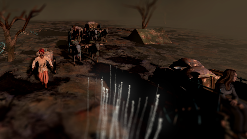 Now old men, each one shares their memories of being only seven years old when forced from their homes. The participant is able to witness the frightening and tragic events unfolding from the perspective of each child with some light moments of interactivity.
