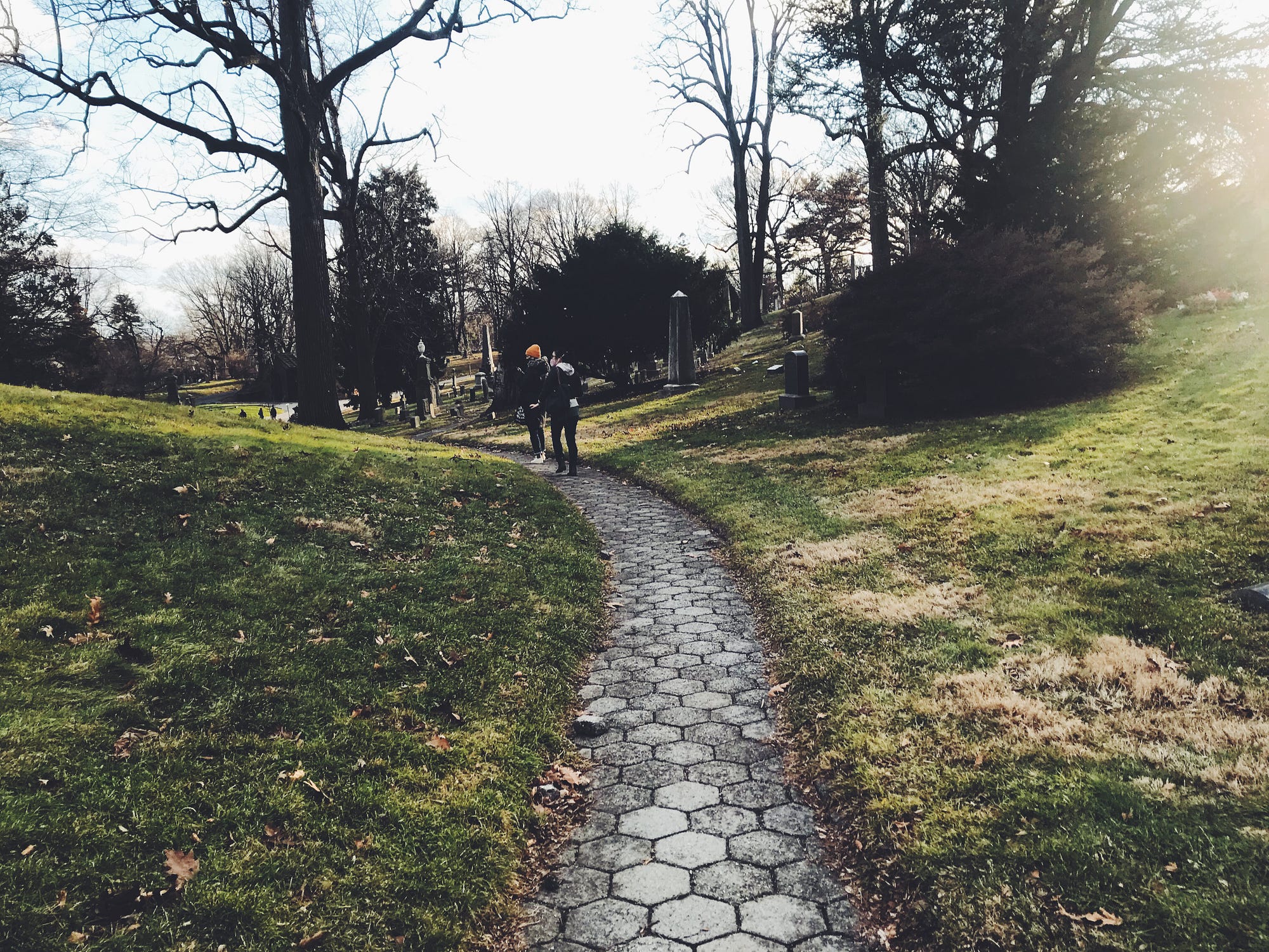 Upon discovering Cairns, I looped in three friends willing to spend a day walking through a cemetery. I purchased and downloaded the mp3s from Gelsey Bell’s Bandcamp, told everyone to pack their headphones (while I forgot to pack my own headphones), and headed down. Thankfully the responsible person in the group brought two pairs. When we got to the entrance, we pulled out our respective phones and pressed play together after counting down to make sure we started at the same time.