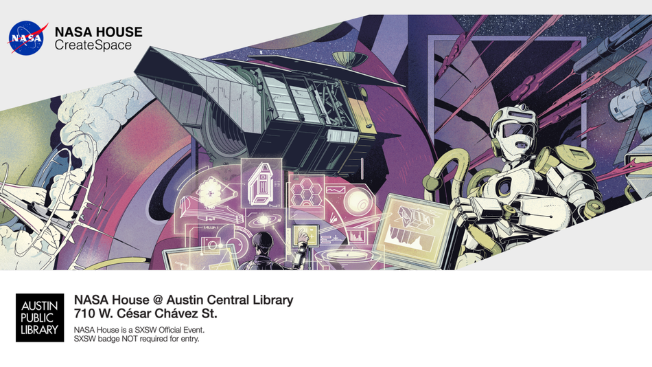 NASA’s CreateSpace transforms Austin’s Central Library into an immersive experience where visitors don’t just learn about space — they help shape it. Spanning multiple floors of this state-of-the-art library in the heart of downtown Austin, CreateSpace blends hands-on creation, interactive exhibits, and sensory experiences that showcase NASA’s full spectrum of exploration and discovery. CreateSpace invites everyone to explore space science through their own lens — whether that’s art, music, technology, or pure imagination.